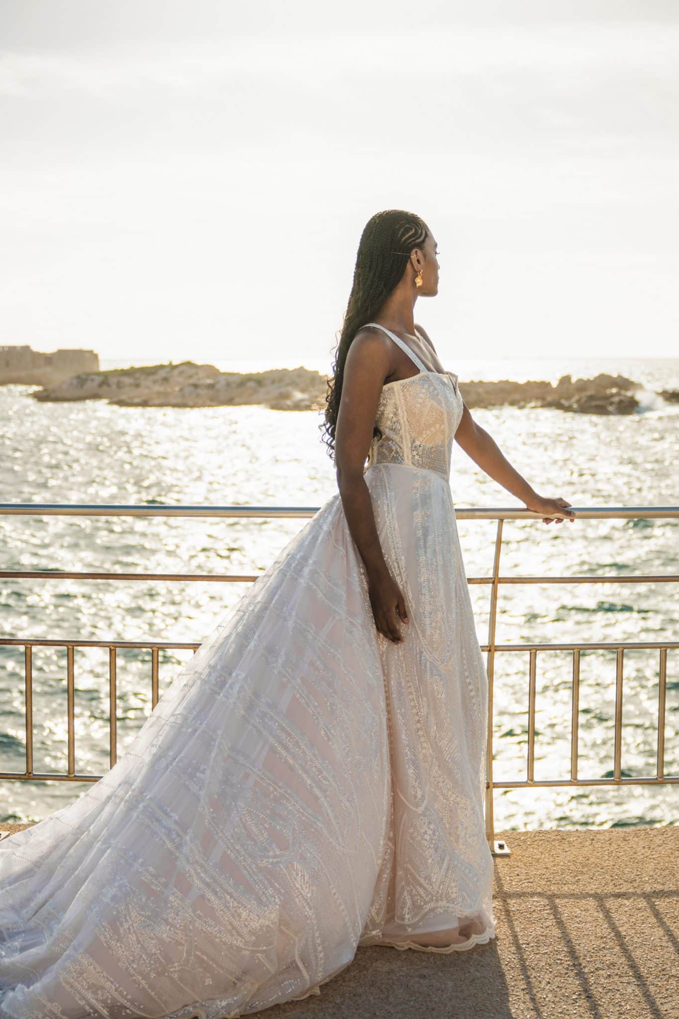 Choisir le modèle Samena, c’est bénéficier d’un accompagnement technique privilégié dans notre showroom marseillais. Lors de votre essayage privé, nous analysons ensemble la tombée des matières et les ajustements nécessaires pour que la robe devienne votre seconde peau. Notre approche en demi-mesure nous permet d’adapter précisément le corset et la longueur de la jupe à votre morphologie, assurant un tombé de tissu sans aucun pli inutile. Que vous veniez de Marseille, d’Aix-en-Provence ou d’Aubagne, vous profiterez des conseils d’expertes de nos couturières stylistes pour sécuriser votre projet et arriver sereine le jour de votre union.